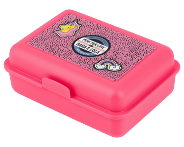 • Praktický plastový box na svačinu s motivem navrženým dcerou Dary Rolins a uzavíráním na jeden zámek
