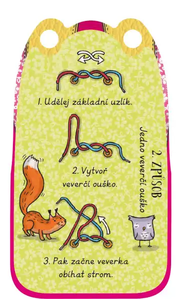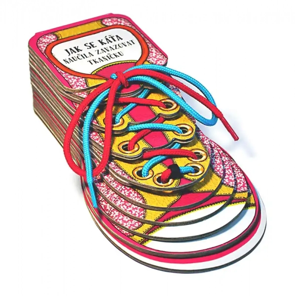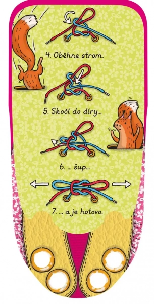 V knize naleznete dva způsoby zavazování tkaniček, aby si mohl každý vybrat ten, který je mu bližší. Tkanička se dá z jednotlivých dírek vytáhnout stejně jako ze skutečné boty. Děti se tedy naučí nejen tkaničky zavazovat, ale zdokonalí si i svoji jemnou motoriku při navlékání tkaniček do dírek.