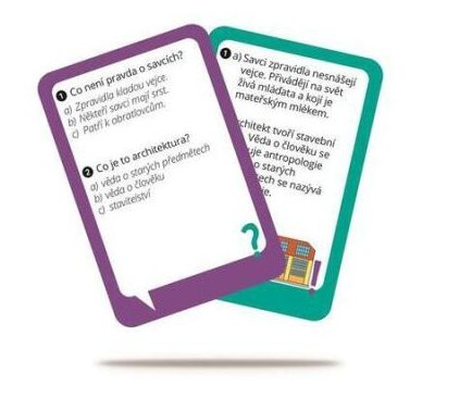 Na každé kartě se nachází vždy dvě otázky. Odpovědi uvidíte po otočení na druhé straně. Cestovní balení je ideální nejen na výlety, ale třeba i do školního batohu. O přestávce se bude hodit!