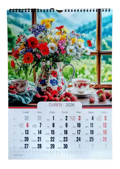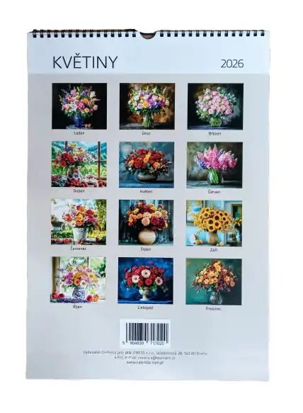 Originálně naaranžované kytice z čerstvých živých květů v nástěnném kalendáři s univerzálním kalendáriem. Potěšte se pohledem na fotografie pestrých a nikdy nevadnoucích květů bez ohledu na roční dobu.