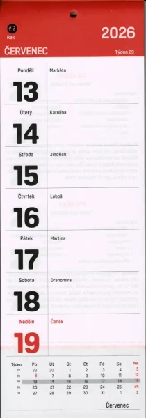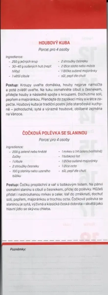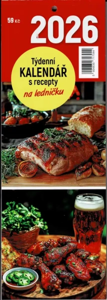 Nástěnný kalendář na rok 2026 s recepty. Každý týden Vás potěší dva recepty na chutný pokrm. Vhodný pro zapisování důležitých poznámek, k organizování různých událostí každodenního života.