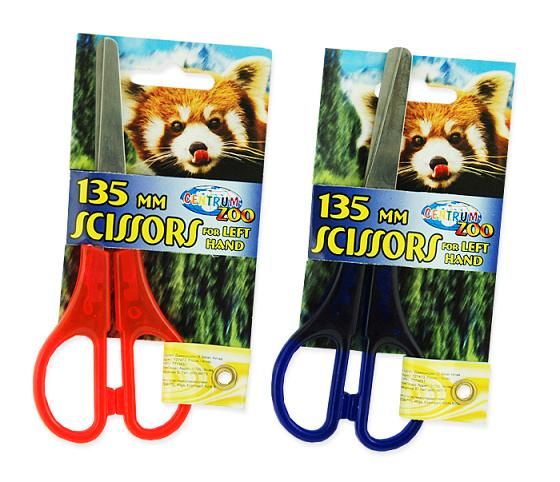 nůžky pro leváky s převrácenými čepelemi- čepele nůžek jsou spojeny kovovým šroubem- pružné gumové rukojeti - velikost 135mm