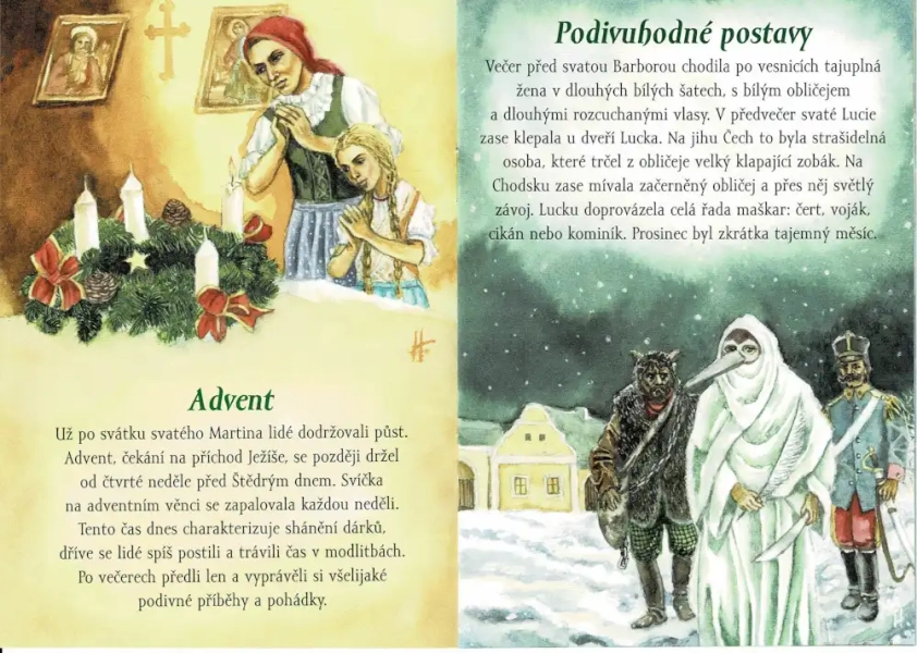 Knížečka svými texty a obrázky připomíná, proč slavíme Vánoce. Ty se u nás objevily s příchodem křesťanství. Podíváme se do vesnic a městeček našich předků, seznámíme se s postavami během adventu, s historií betlémů a skromnou podobou Štědrého dne. Některé zvyky mizí, jiné se znovu vrací, ale to hlavní – vzájemná láska v rodinách a z ní plynoucí vánoční pohoda – jistě zůstává.